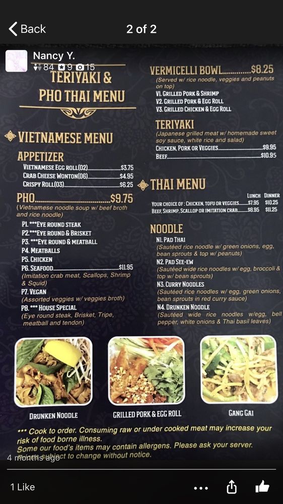 Teriyaki and Pho Thai, located in Warren, MI, offers a delicious blend of Thai and Vietnamese cuisine. With options for delivery and takeout, as well as ample vegetarian choices, this restaurant caters to a variety of tastes. Their menu includes a variety of flavorful curries, from the traditional Gang Gai Thai to the unique Peanut Curry. The fried rice dishes are a must-try, especially the Pineapple Fried Rice for a sweet and savory twist. Noodle lovers will enjoy classics like Pad Thai and Pad See Ew, as well as the spicy Curry Noodles. The cozy atmosphere and attentive service make dining at Teriyaki and Pho Thai a delightful experience. Give it a try and indulge in the rich flavors of Southeast Asia.